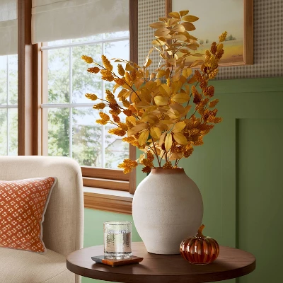 Spruce up your living space with this Hops Artificial Fall Leaf Branch from Threshold™. This artificial stem feature faux hops and leaves on multiple branches for a charming autumnal touch without the need for watering. Arrange the branch in a vase alone or with other real or faux stems for a cohesive, eye-catching display.