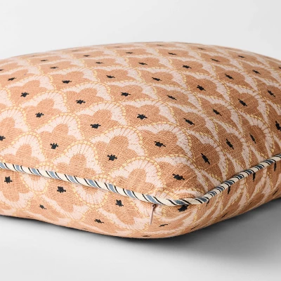 Add an amazing geo pattern to your home decor with the Square Geo Pattern with Striped Piping from Threshold™ Design with Studio McGee. Covered with a geometric print, this peach square pillow comes complete with a striped piping to make a beautiful addition to your space. The hidden zipper helps create a finished look, while the removable cover allows for easy maintenance. This printed pillow is made with cotton-linen blend fabric and polyester filling, this printed pillow feels soft and comfortable as you rest.